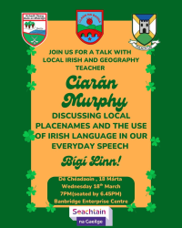 Come along and discover the origins of Gaeilge in our local area and uncover the meaning behind the townlands and place names we use every day.