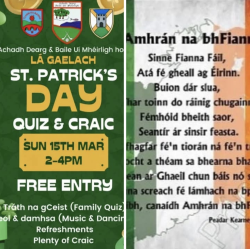 The celebration will include music and dancing, as well as a Tráth na gCeist (quiz). Refreshments will be provided along with plenty of craic.